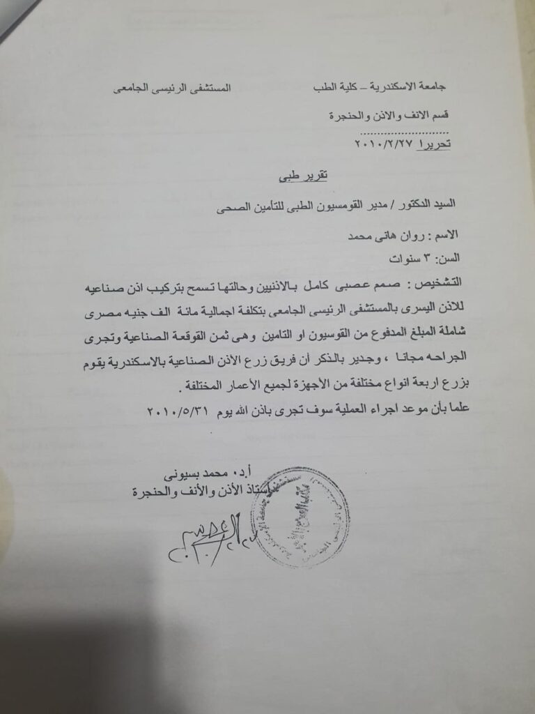 هذا القرار غير منصف، لأن بطاقة الرقم القومي لابنتي وولي أمرها، وكذلك التأمينات الاجتماعية للأب، كلها مثبتة في الإسكندرية. كما أن حالتها الصحية لا تسمح لها بالسفر يوميًا لمسافة تتجاوز 80 كيلومترًا إلى كلية التربية النوعية بجامعة دمنهور فرع النوبارية، خاصة أنها تعتمد على جهاز إلكتروني حساس (قوقعة الأذن)، وأي عطل أو ضغط أو إرهاق قد يعرضها لفقدان السمع مرة أخرى.”