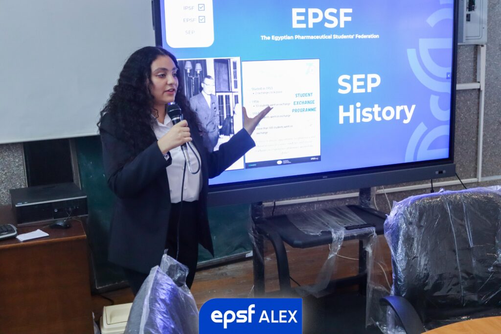 وفي إطار التعريف بالبرنامج، نظم EPSF-Alex ندوة تعريفية داخل كلية الصيدلة بجامعة الإسكندرية، شهدت حضورًا كبيرًا من الطلاب، من بينهم عدد من المشاركين السابقين الذين شاركوا تجاربهم المُلهمة. وقد ساهمت الندوة في توضيح تفاصيل التقديم