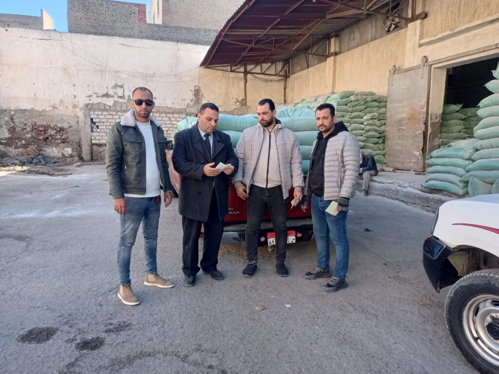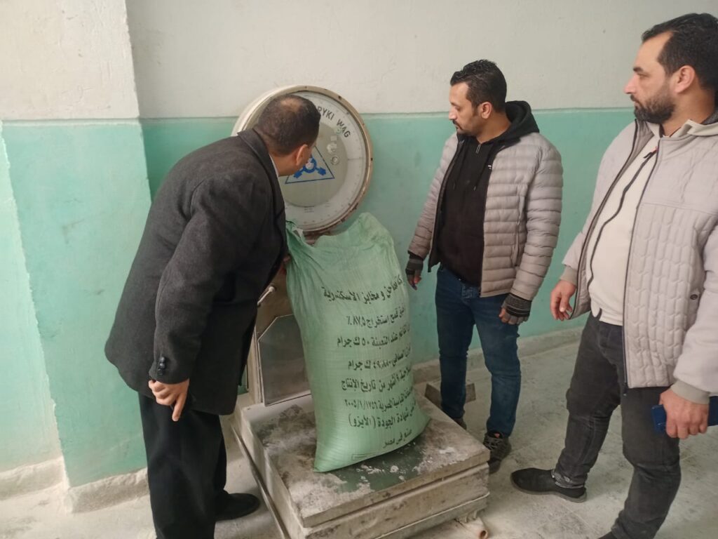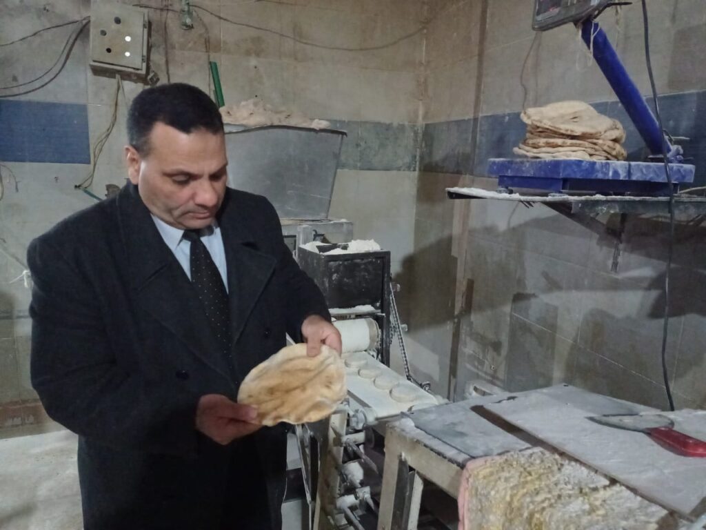 تحرير محضر لأحد المخابز البلدية لتصرفه في عدد 25 شيكارة دقيق بلدي مدعم، زنة الشيكارة الواحدة 50 كجم.