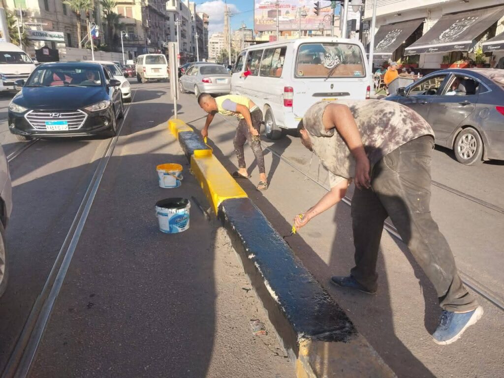 وفي سياق متصل، تواصلت أعمال دهان البردورات بميدان سعد زغلول بدايةً من القائد إبراهيم وحتى الغرفة التجارية، ضمن خطة الحي لرفع كفاءة الشوارع وتحسين المشهد الجمالي والحضاري للمنطقة.