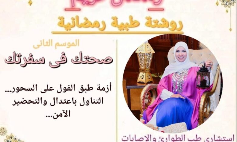 أكدت د. ميرفت السيد مدير المركز الإفريقي لخدمات صحة المرأة، واستشاري طب الطوارئ والإصابات، أن طبق الفول البلدي يظل “نجم السحور” على المائدة المصرية في رمضان، لما له من فوائد غذائية مهمة، لكنه قد يتحول إلى عبء صحي إذا أسيء تناوله أو تحضيره.