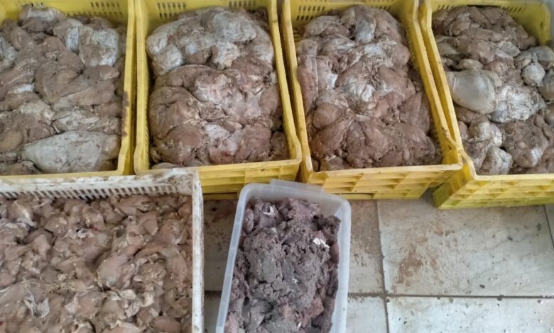 وقد أسفرت الحملات عن ضبط ثلاجة لحيازتها لحوم منتهية الصلاحية، بالإضافة إلى دواجن ومصنعات لحوم مجهولة المصدر، حيث تم التحريز والمصادرة للأصناف والكميات الآتية:300 كجم لحوم منتهية الصلاحية