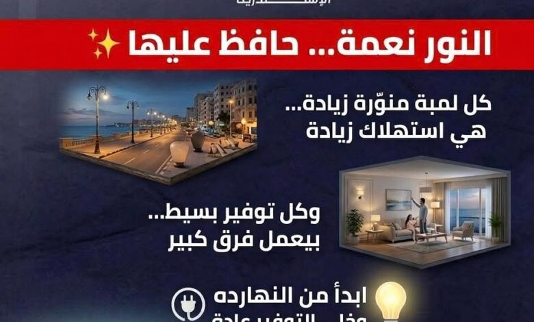 دعت محافظة الإسكندرية المواطنين إلى تبني سلوكيات ترشيد استهلاك الكهرباء، في إطار جهودها لنشر الوعي بأهمية الحفاظ على الطاقة وتحقيق الاستخدام الأمثل للموارد.