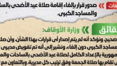 مجلس الوزراء ينفى إلغاء إقامة صلاة عيد الأضحى بالساحات والمساجد الكبرى