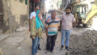 نهى خليفة تتابع رفع كفاء الطرق وإزالةالإعلانات المُخالفة والأجزاء المُعلقة بأحد العقارات بحي الجمرك