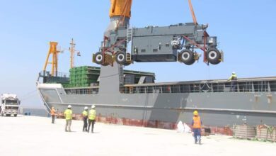 بالصور محطة تحيا مصر متعددة الأغراض بميناء الإسكندرية(TMT) تستقبل الدفعة الأولى من أوناش الساحة العملاقة