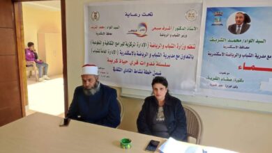 مديرية الشباب والرياضة بالاسكندرية تنفذ ندوة توعية لمواجهة الانحرافات السلوكية ضمن سلسلة ندوات قري حياة كريمة