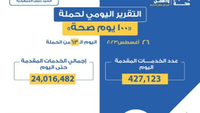 متابعة /علا خالد أعلن الدكتور خالد عبدالغفار وزير الصحة والسكان، تقديم 427 ألفا و123 خدمة، من خلال حملة «100 يوم…