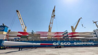 نجاح ميناء الأدبية في استقبال شحنة ريش محطات توليد الكهرباء من الرياح بطول 84 متراً الأطول من نوعها