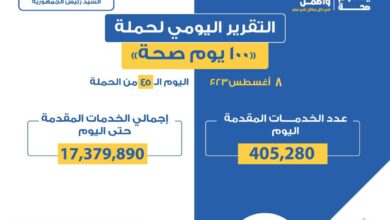 متابعة /علا خالد أعلن الدكتور خالد عبدالغفار وزير الصحة والسكان، تقديم 405 آلاف و280 خدمة من خلال حملة «100 يوم…
