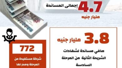 متابعة /علا خالد أعلن المهندس أحمد سمير وزير التجارة والصناعة أن صندوق تنمية الصادرات أصدر شهادات الشريحة الثانية من المرحلة…