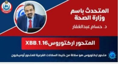 متابعه: حبيبه منتصر قال الدكتور حسام عبد الغفار المتحدث الرسمي باسم وزارة الصحة والسكان إن المتحور أركتوروس 1.16.XBB هو سلالة…
