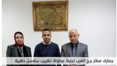 متابعة/علا خالد استطاعت جمارك مطار برج العرب الدولي فى محافظة الإسكندرية، برئاسة مصطفى العربي مدير عام المواني الجوية، من ضبط…