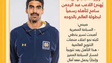 متابعة/ سماء خيرى هنأ الدكتور أشرف صبحي وزير الشباب والرياضة، اللاعب عبد الرحمن سامح بعد تأهله رسمياً لبطولة العالم بالدوحه…