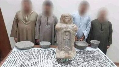 ضبط 4 أشخاص وبجوزتهم تمثال وقطع أثرية بمخزن خضار بالبلينا