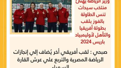 صبحى يهنئ منتخب سيدات تنس الطاولة بالفوز بلقب بطولة أفريقيا والتأهل لأوليمبياد باريس 2024